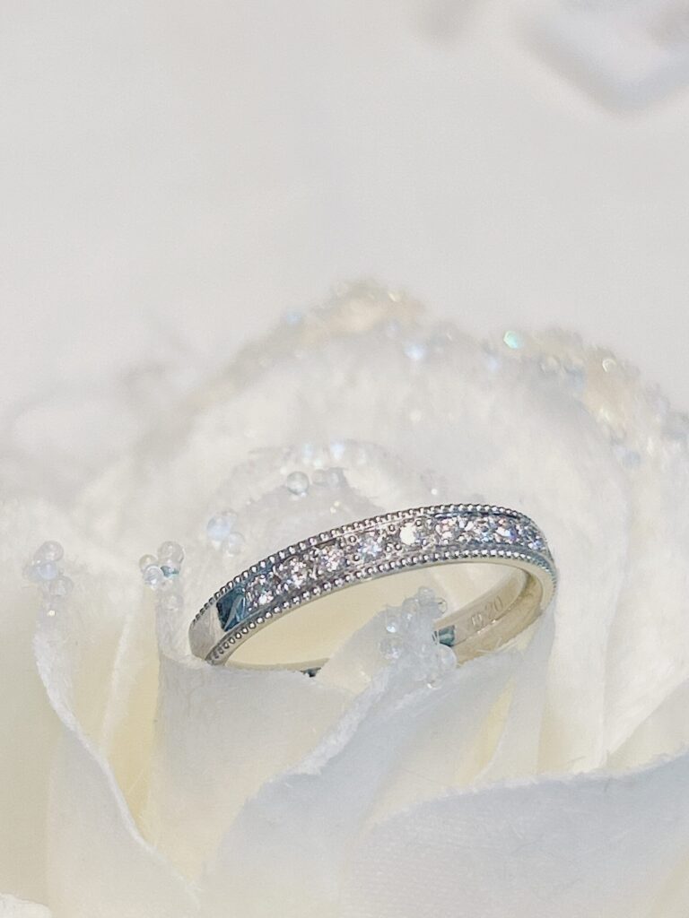 小さなダイヤを敷き詰めた、その名の通り「永遠の愛」の象徴であるエタニティリング