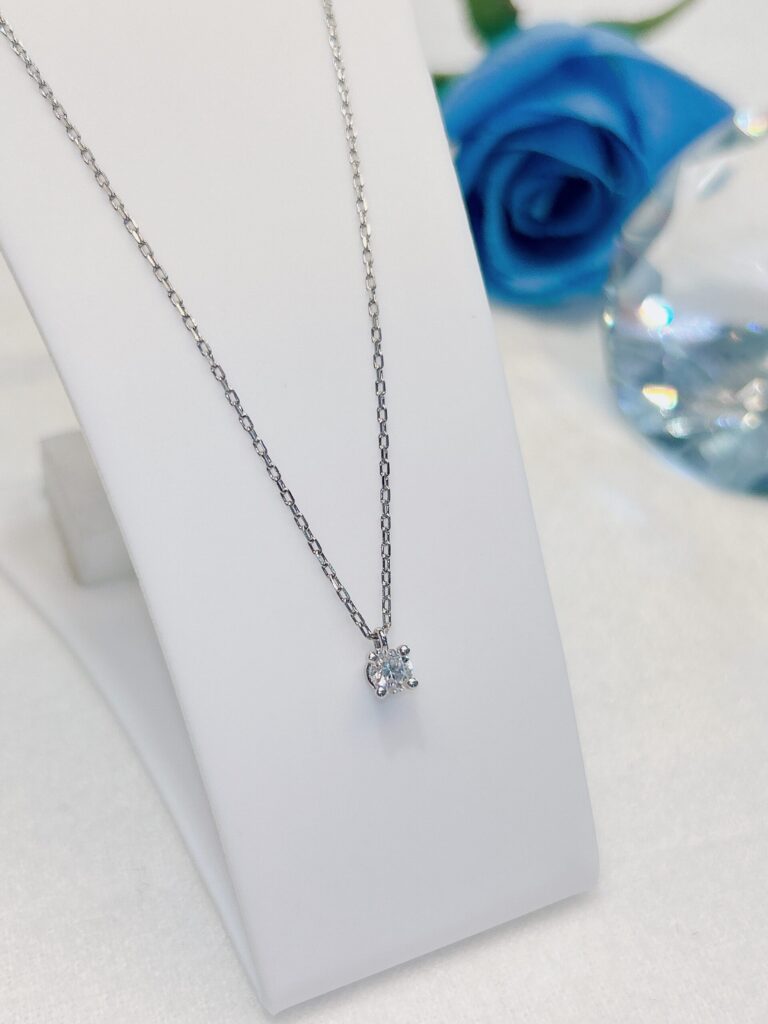 シンプルな一粒ダイヤのネックレスは日常に取り入れやすいデザイン