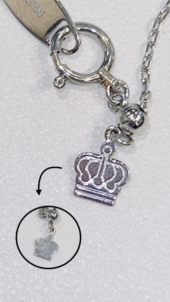 ロイヤルアッシャーのロゴ、王冠型のエンドパーツには二人の記念日やイニシャルなどを刻印するのがオススメ