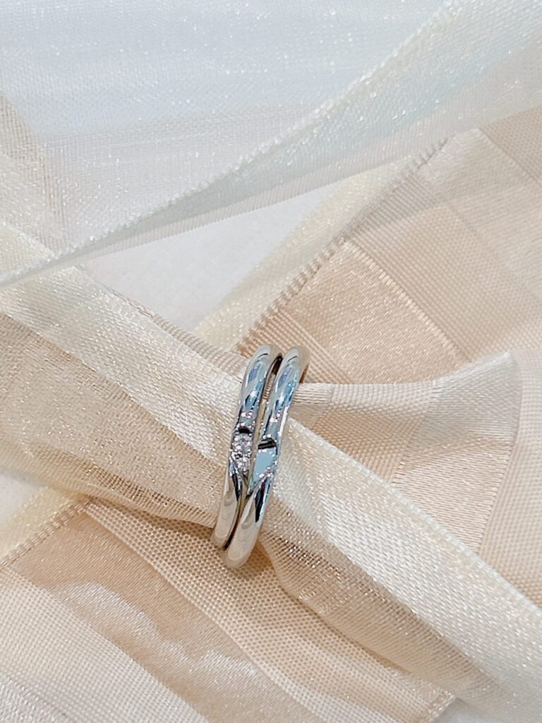 ふたつのリングを重ねることで浮かび上がるハートマークは、重なるふたりの想いを表現しています