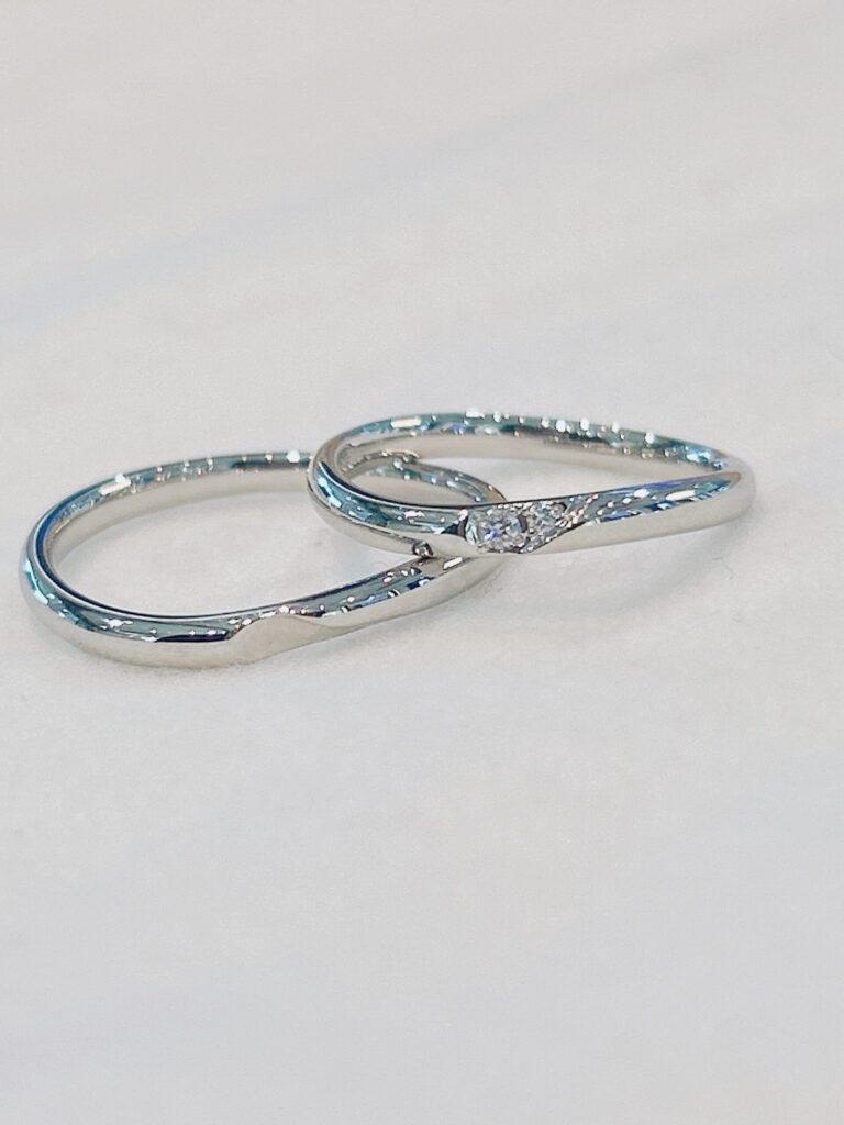 ダイヤありモデルはサイズの違うダイヤモンドを2石セッティング